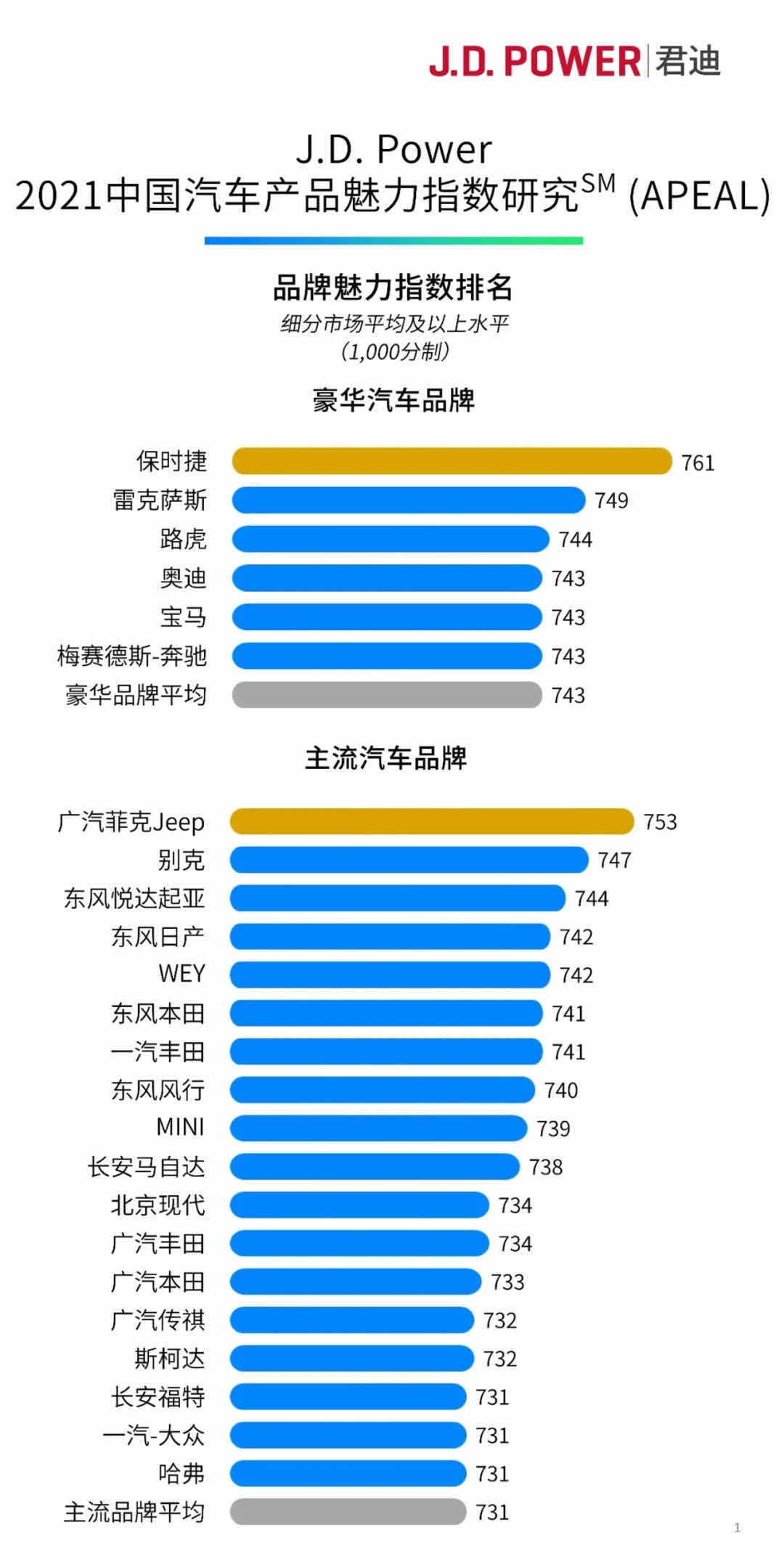 那么问题也来了,中国人或者更直接的说,中国最大的汽车消费群体——年轻人究竟真爱哪些品牌呢?J.D. Power近期发布的一项数据给出了答案。8月19日,J.D. Power发布了2021年中国汽车产品魅力指数,结果显示,保时捷是中国汽车市场上魅力值最高的品牌,此外跻身豪车品牌前三甲的还有雷克萨斯和路虎。
