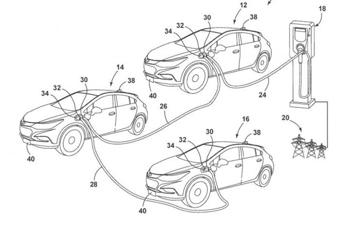 通用汽车的串联充电系统包括充电电缆和其他设备,使两辆或多辆电动汽车能够同时连接到一个充电站。电动汽车可以连接在一起,以串联或并联方式充电。开关控制器或其他旁路或继电器将导致部分电力沿着线路进一步传输到后续电动汽车。