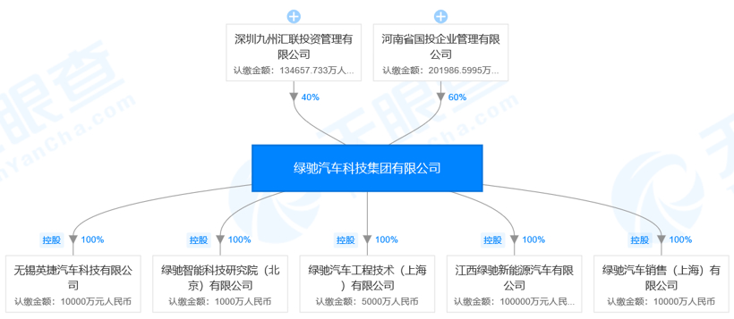 本周,我们从天眼查获悉,河南省国投企业管理有限公司(以下简称“河南国投”)成为绿驰汽车科技集团有限公司(以下简称“绿驰汽车”)的大股东,持股比例60%,认缴金额20.2亿元。