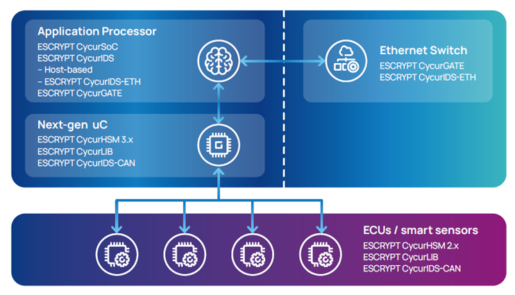 ESCRYPT车载计算机安全套件提供了一种全面且面向未来的方法来保护车载计算机(SDV的核心驱动因素)。该综合套件提供了高度可定制和灵活的安全解决方案组合,可应对SDV所面临的独特挑战,包括分布式团队之间的高效协作需求、高数据速率管理以及维护严格的安全标准。ESCRYPT车载计算机安全套件将复杂性降至最低,简化并加快了集成和验证过程。它包括可信操作系统、硬件安全模块(HSM)安全、入侵检测系统(IDS)和安全以太网交换机。